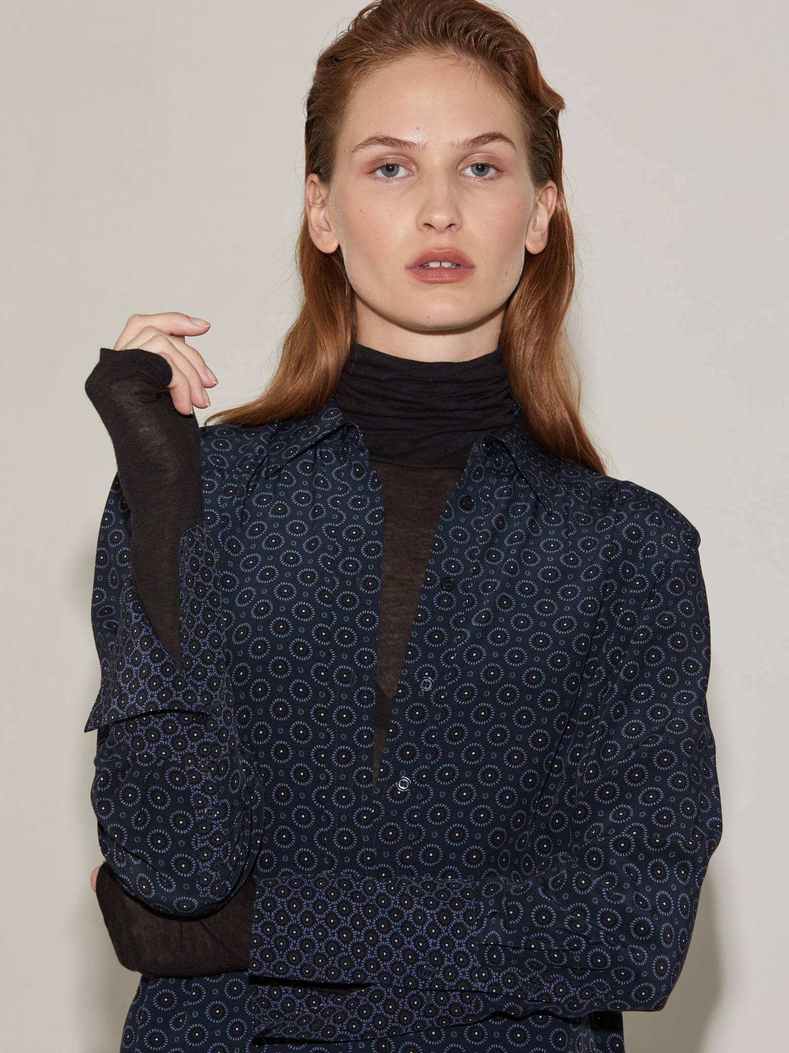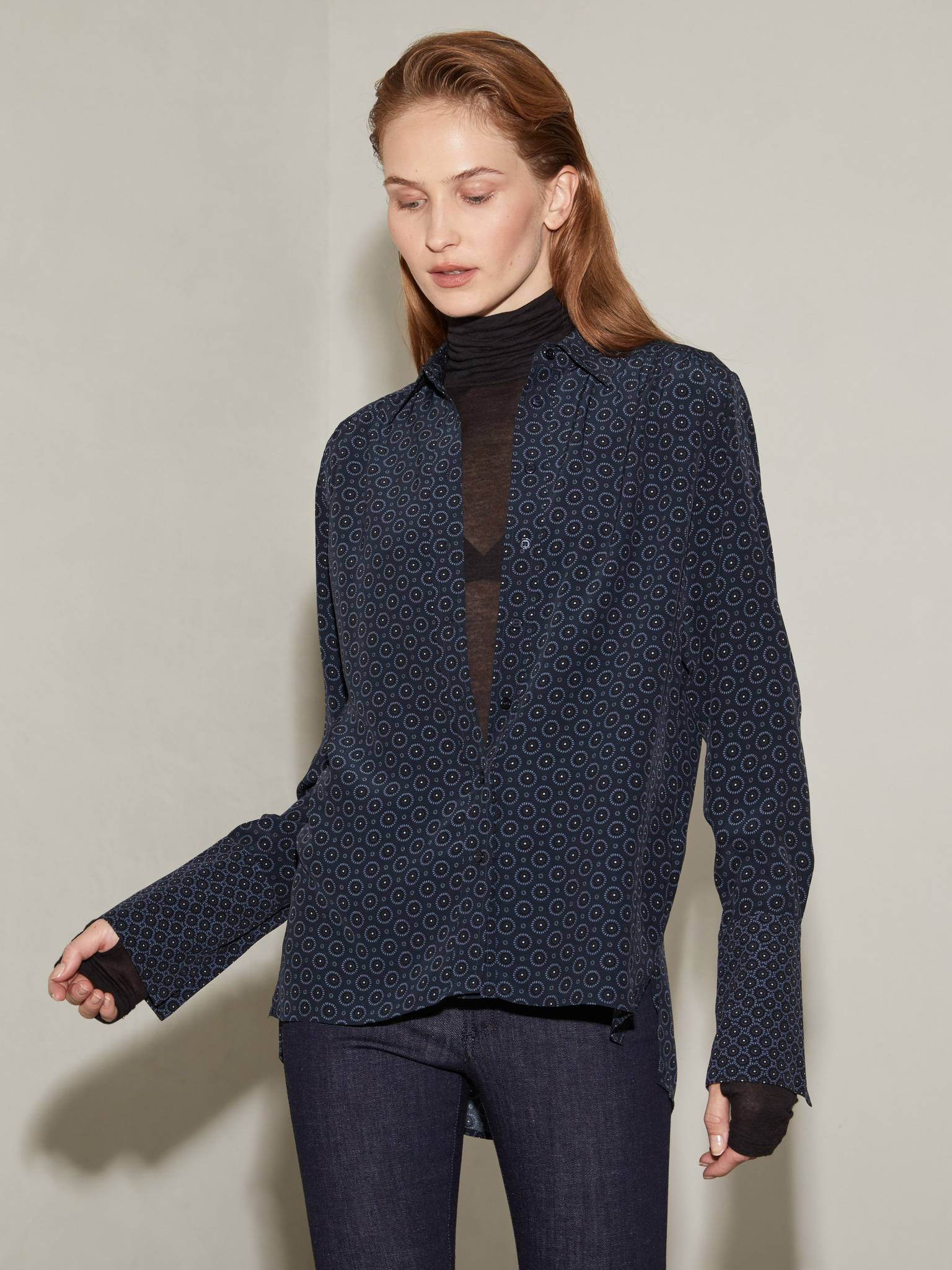 The Hunkydory Ellie Shirt is an allover printed shirt with front button closure, and double cuffs with double button loops.