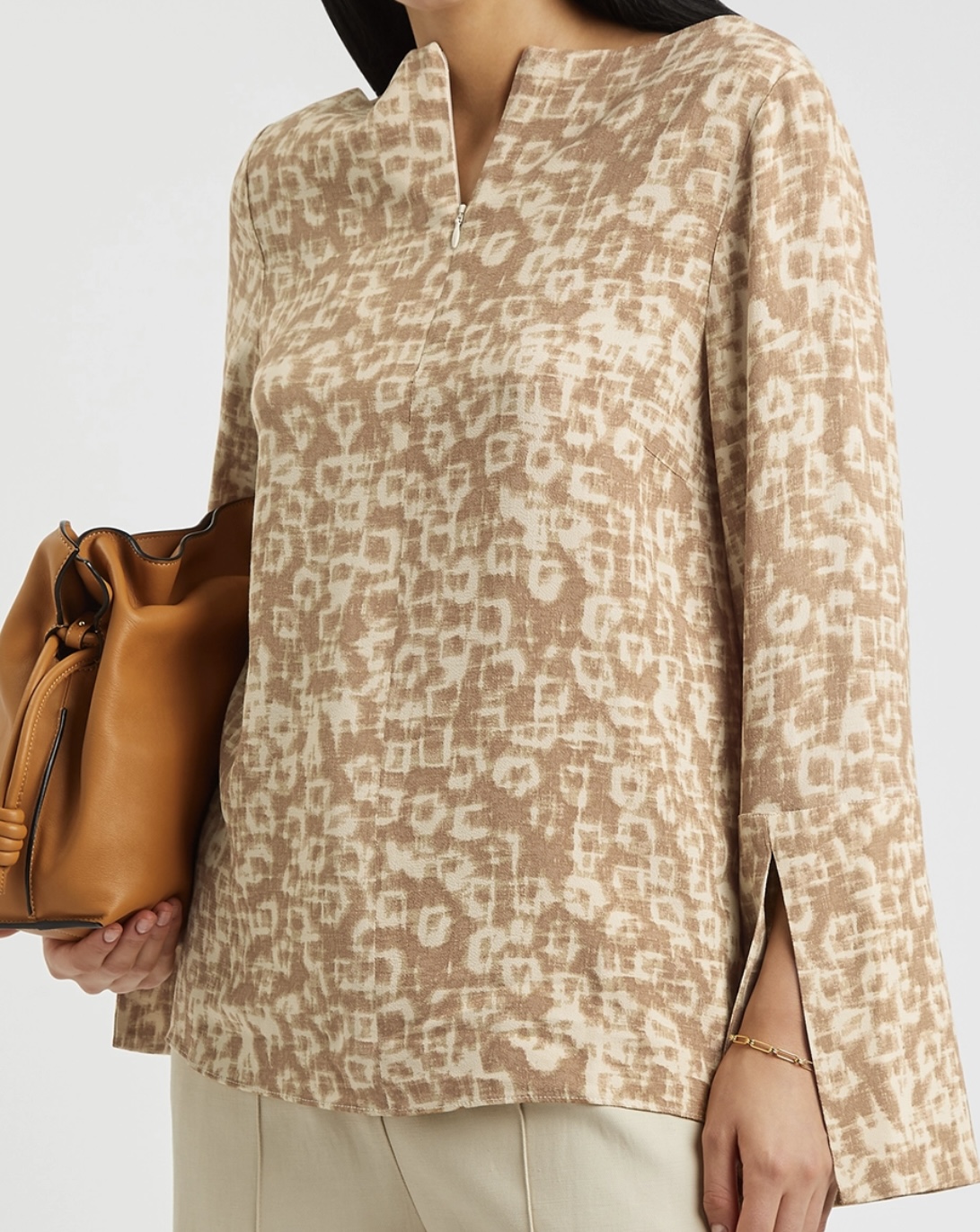 Take your transitional edit into a minimalist direction with the Solinas Blouse Shaped with clean lines, the design is detailed with considered touches such as slits at the sleeves. Take note of the zip fastening at the neck, which can be left undone to showcase pendant necklaces and silk scarves alike.