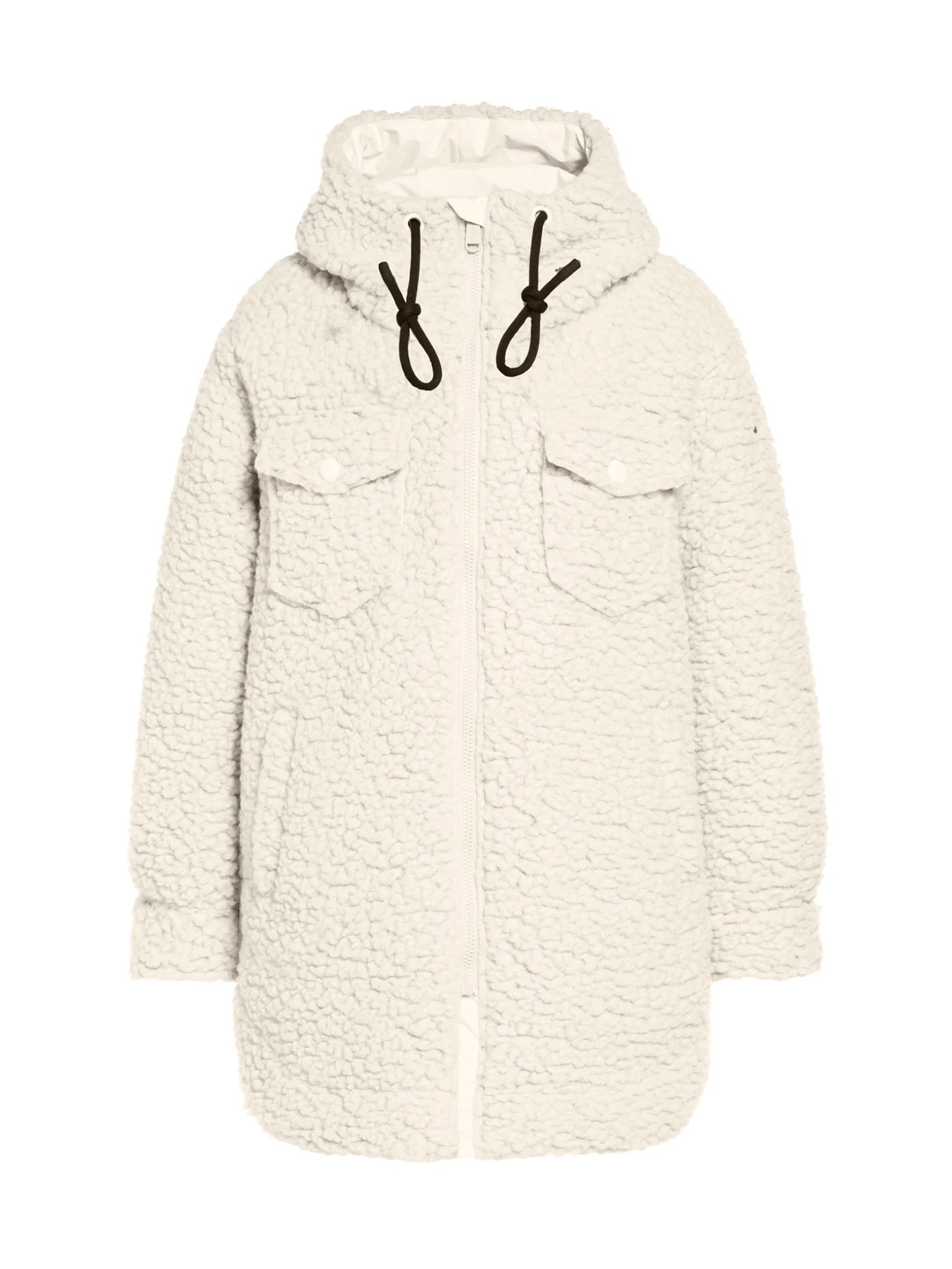 Shearling jacket with fixed hood and pockets