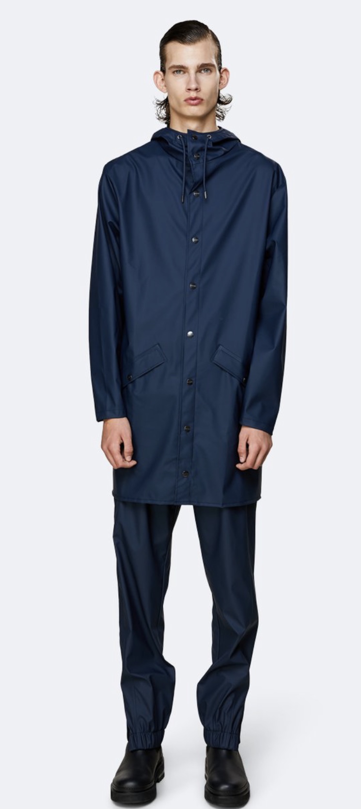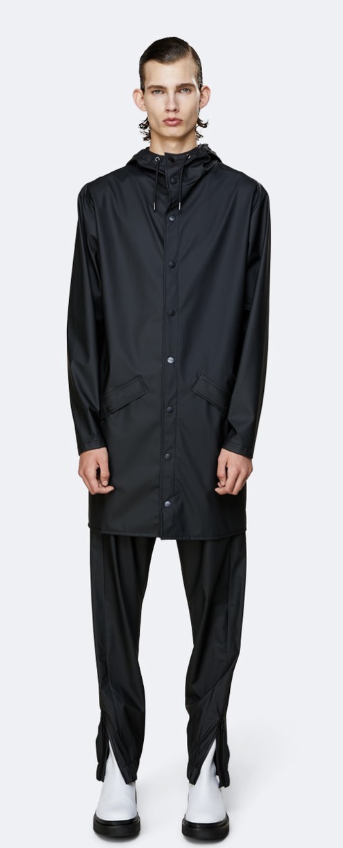 Rains’ Long Jacket is a longer version of the urban Jacket and both are essential Rains classics. Made from a water-resistant lightweight fabric with a matte finish, this unisex rain jacket has an elegant appearance. Designed in a casual raincoat silhouette, it has double welded slanting pocket flaps, adjustable cuffs and a fishtail.