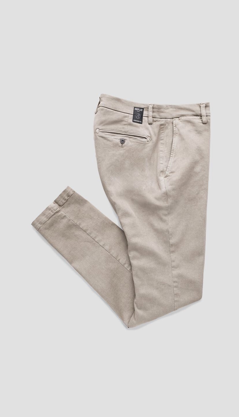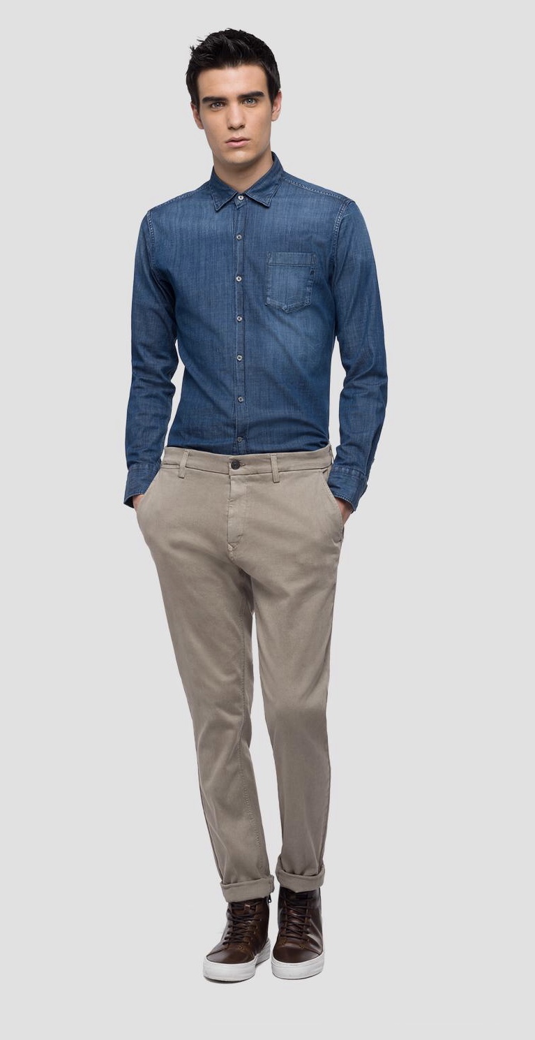 Men’s slim fit jeans in 11,5 oz reform Hyperflex denim, old colour garment dyed and stonewashed, regular fit and straight leg, two welt pockets at the front, two welt pockets with buttons at the back, zip and button fly. Hyperflex innovative technology that combines the authentic denim look with an extreme freedom of movement and absolute comfort.
